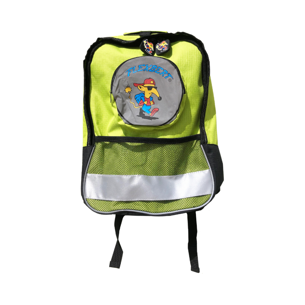 Populär produkt som är bra oavsett årstid. Rymmer mycket och gör barnet synligt både på ljusa dagen och mörka kvällen tack vare sin starka neongula färg och reflexer på.